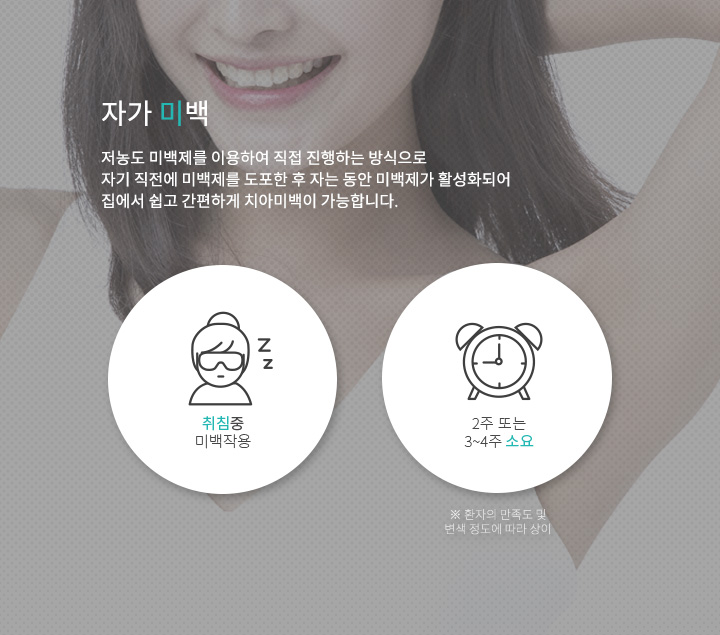 커피, 와인, 흡연 등의 원인으로 누렇게 변색된 치아에 미백제를 도포하고 인체에 무해한 할로겐 LED 레이저를 조사하여